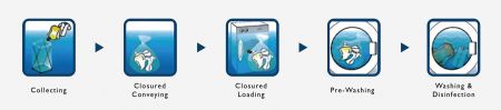 В случае организации зоны лечения инфекционных заболеваний в назначенной больнице, сбор простыней и сменной одежды, используемых пациентом, халатов и других инфекционных тканей, использованных пациентами, должен быть упакован в двухслойные растворимые пакеты с пятнами.